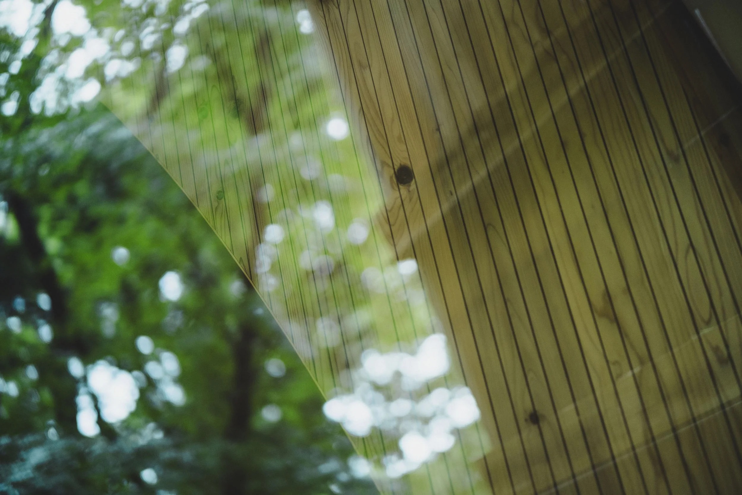壁面は縦のスリットが入った板材を並べて構成されている。上下に溝を掘り、障子や襖のように納めることで釘やビスの使用を最小限に抑え、さらにパーツのみ交換できる仕組みを採用し、メンテナンス性にも配慮している。