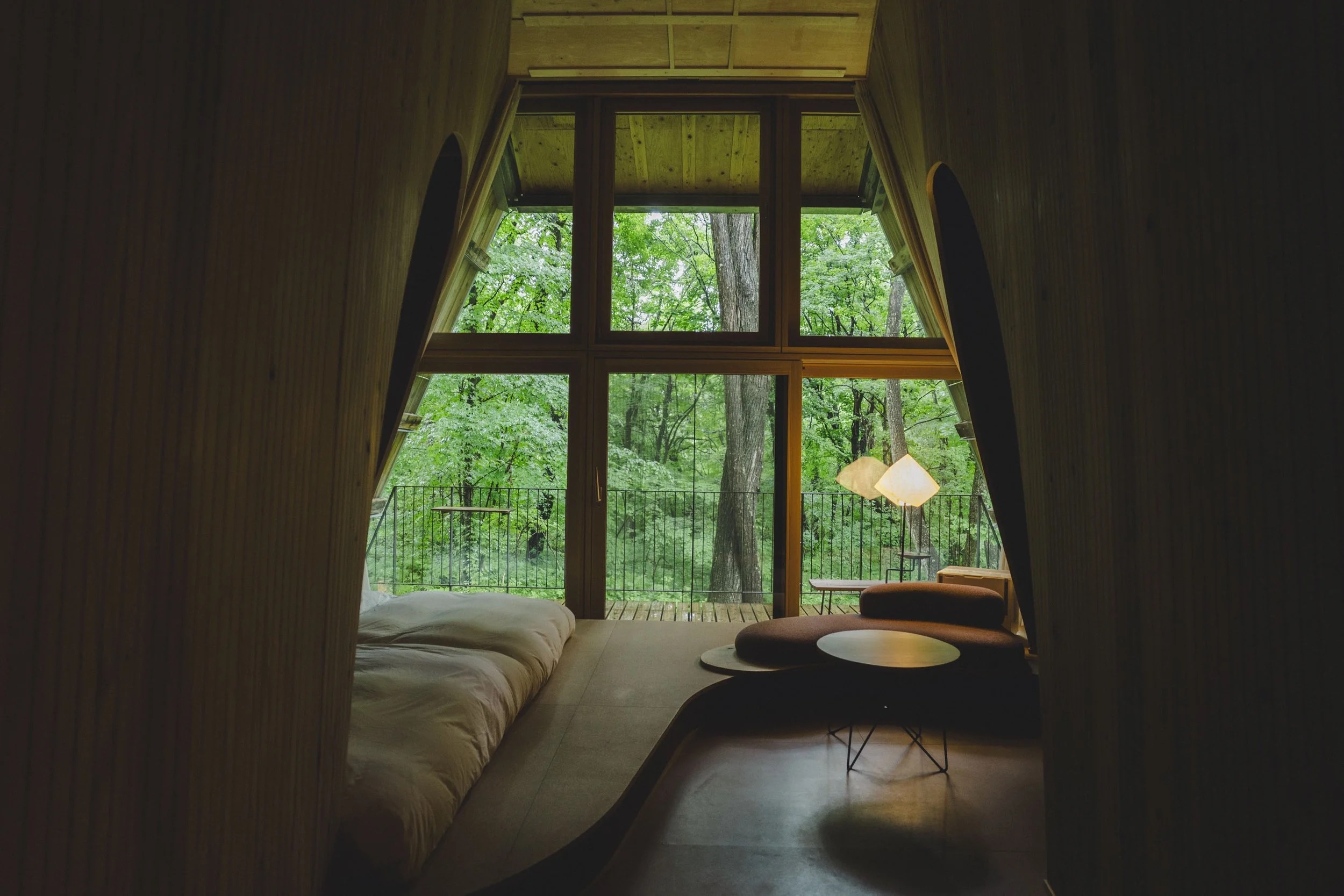 「動物からしたら、きっと人間には会いたくない。だから窓の数を減らしました。SANUのキャビンは、窓がデッキ側にしかない。あえて窓の数を減らすことで、周りの森を暗くする工夫もしています。いわゆるリゾートは、窓がいっぱいあってライトアップもされてキラキラしてますよね。でも、動物は夜行性のものが多いので、彼らの居場所をちゃんと提供してあげたい。人間だけの視点で設計すべきではない、自然との共生を考えた建築にしたかった」。