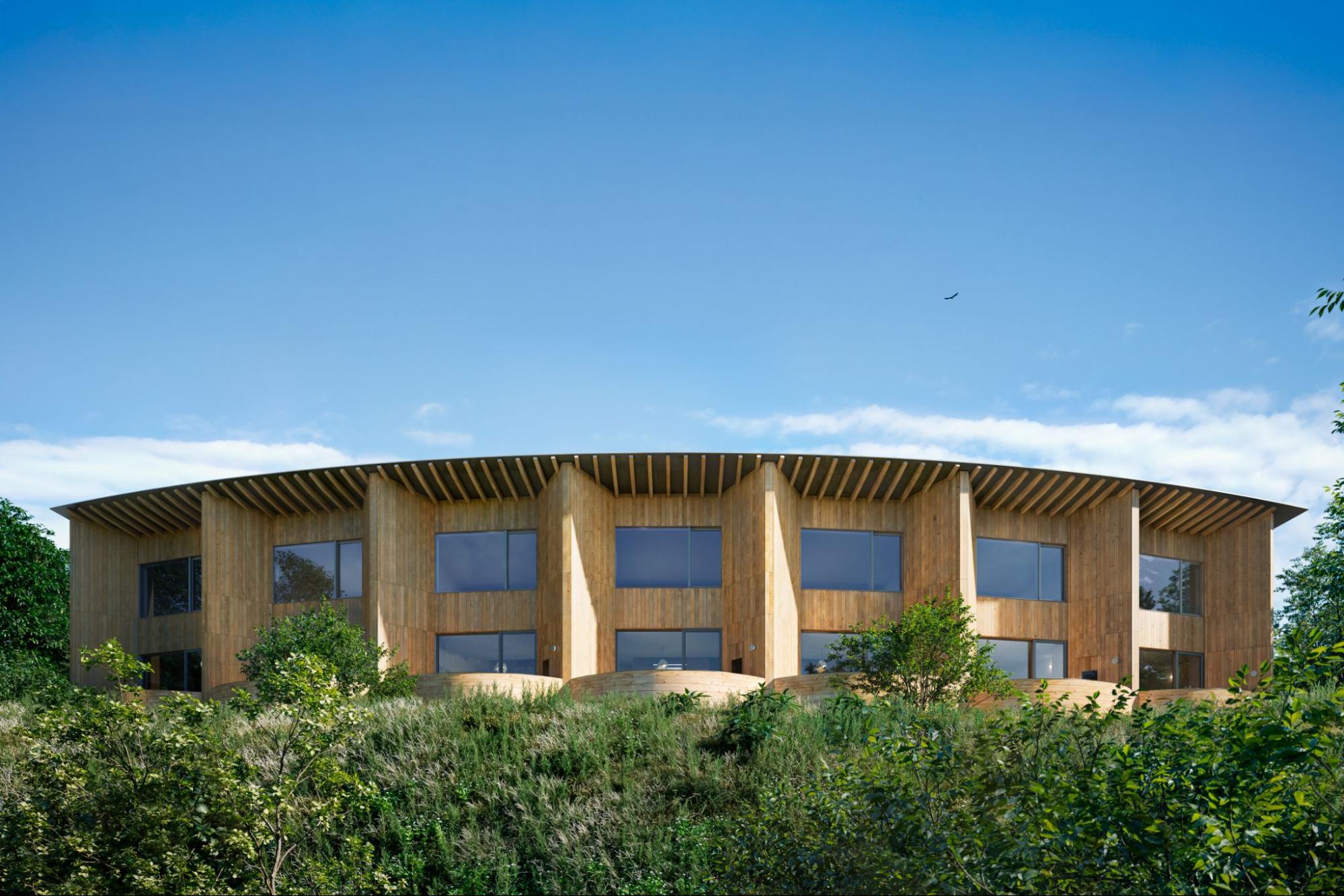 出来上がった瞬間が完成ではない。やがて色を深め、周囲の森や空と呼応しながら、この土地の一部になっていく建築だ。
